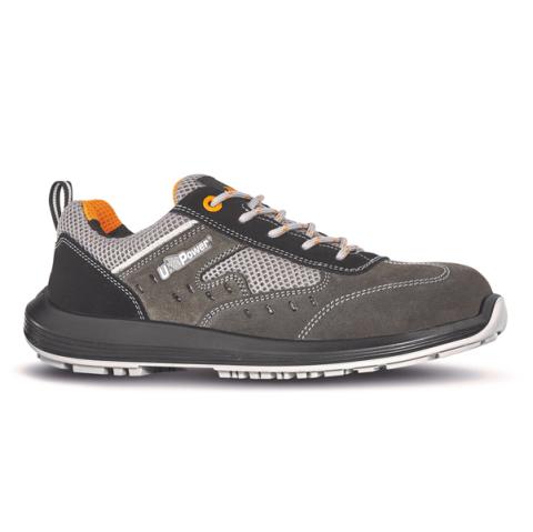 Descrizione / dati tecnici: Scarpe antinfortunistiche basse totalmente "metal free", comode e leggere U-Power della linea Rock&Roll. Tomaia in morbida pelle scamosciata con aeratore laterale esterno, inserti in Mesh traspirante, puntale AirToe Composite, antiperforazione, antiscivolo e suola PU/PU. Dispositivo di protezione individuale: Modello, Calzatura bassa art. RR20196 BREZZA. Categoria di protezione: II. Marcatura: S1 P SRC. Calzatura di sicurezza per uso professionale conforme alla norma armonizzata EN ISO 20345:2011.