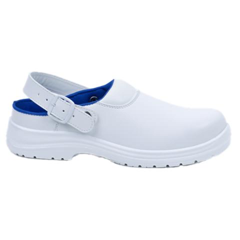Descrizione / dati tecnici: Sabot da lavoro in microfibra adatti per lavori nel settore agroalimentare, con cinturino regolabile e staccabile. Suola a doppia de nsità. Prodotto leggero per ridurre l'affaticamento durante la giornata. Elevata stabilità grazie alle proprietà di aderenza della suola. Design liscio per una facile pulizia quotidiana. Soletta estraibile per un facile lavaggio. Traspirabilità. Colore: bianco. Tg disponibili da 35 a 48. Puntale di protezione : Acciaio inox | Sistema di allacciatura : Velcro - Senza lacci | Peso : 485 grammi per scarpa. Settori: Produzione / Lavorazione - Hotel e ristoranti -Alimenti e bevande. Protegge contro rischio antistatico, urti e scivolamento. Certificazioni: CE - EN ISO 20345 - SB FO A E SR.