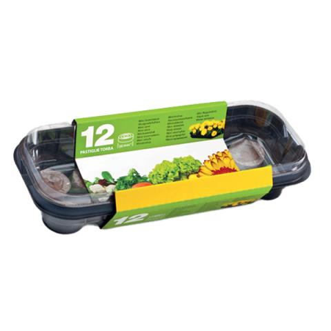 Descrizione / dati tecnici: Serra con coperchio dim. 27z12cm + 12 pastiglie di torba.