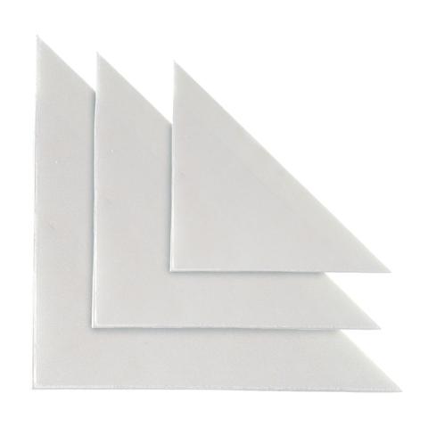 Descrizione / dati tecnici: Tasche autoadesive realizzate in PVC utili da applicare all'interno di cartelle, raccoglitori ecc.. Formato utile 10x10cm triangolare.