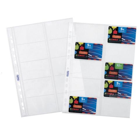 Descrizione / dati tecnici: Busta a foratura universale porta cards- biglietti da visita. Realizzate in polipropilene trasparente superior. Consentono l'archiviazione di schede telefoniche e cards varie e biglietti da visita co ultra protezione. Ideali per collezionismo (evita l'effetto fotocopia). Formato busta 21.5x29.7cm. Contiene 10 tasche con apertura superiore da 8.5x5.4cm. Confezione da 10 buste. Made in Italy