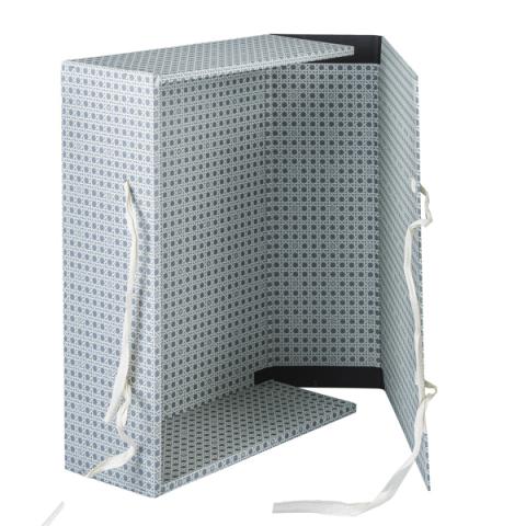 Scatola archivio in legno - con fettuccia - 38 x 27 cm - dorso 12 cm - grigio - Brefiocart