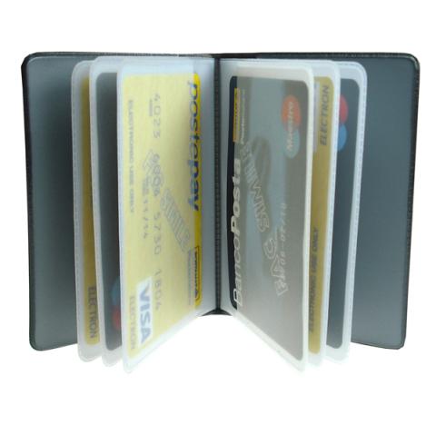 Descrizione / dati tecnici: Portacard protezione contactless a libro 14 scomparti. Copertina in PVC espanso finitura fibra di carbonio spessore 1,3 mm. Tasche interne in pvc antistatico, stampa a caldo in