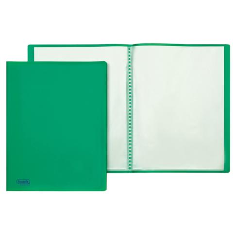 Descrizione / dati tecnici: Portalistino in Naturene (polipropilene) con copertina verde e flessibile. Le 30 buste sono fisse e aperte sul lato superiore. Finitura buccia di arancia. Formato contenuto 22x30cm. Made in Italy