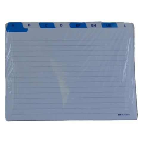 Descrizione / dati tecnici: Schede rubrica A-Z. Formato 17 x 24cm orizzontale. A-Z intercalare.