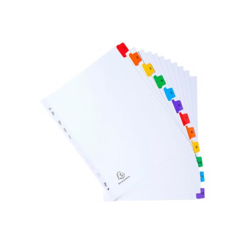 Separatore numerico 1/12 - cartoncino bianco 160 gr - tasti colorati - A4 maxi - Exacompta