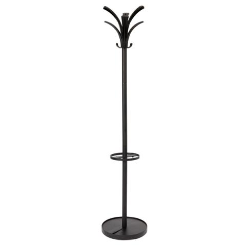 Descrizione / dati tecnici: Appendiabiti in acciaio e abs con base appesantita. Dotato di 6 supporti abito, 3 ganci e portaombrelli con raccogli acqua. Testa girevole. Colore nero. Dimensione ° 38 x 175cm