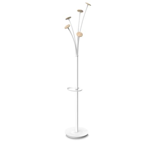 Descrizione / dati tecnici: Un design contemporaneo e innovativo ad un prezzo molto contenuto! Struttura in acciaio con 5 grandi supporti in legno chiaro per una perfetta cura degli abiti. Portaombrelli con raccogli goccia alla base. Base ponderata da 5kg per una maggiore stabilità.