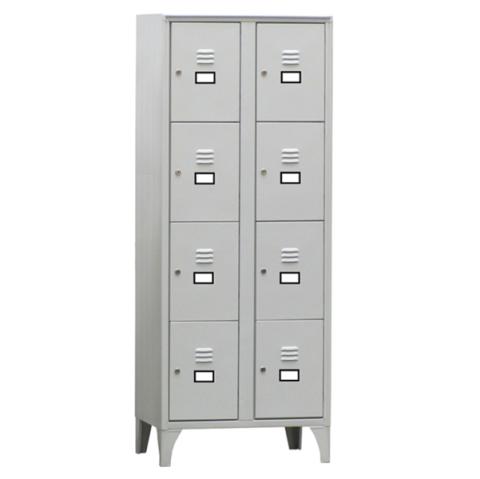 Descrizione / dati tecnici: Armadio casellario a 8 vani. Ogni vano ha un ingresso utile di L27 x H37cm ed è dotato di porta cartellino in materiale plastico applicato all’anta. Chiusura con serratura a cilindro con doppia chiave in dotazione. Fornito montato.
