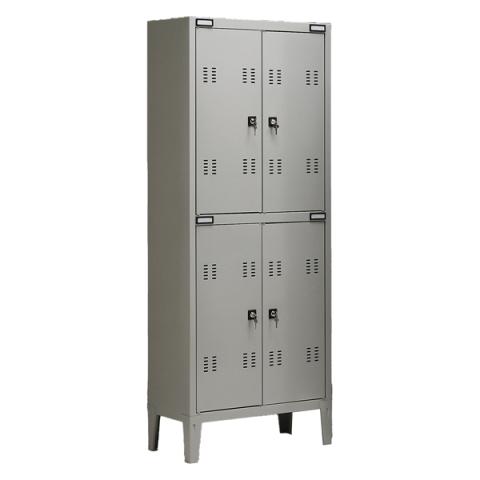 Descrizione / dati tecnici: Armadio spogliatoio a 4 posti sovrapposti L70 x P35 x H180cm; in metallo verniciato grigio, provvisto di serratura e chiavi. Fornito montato.