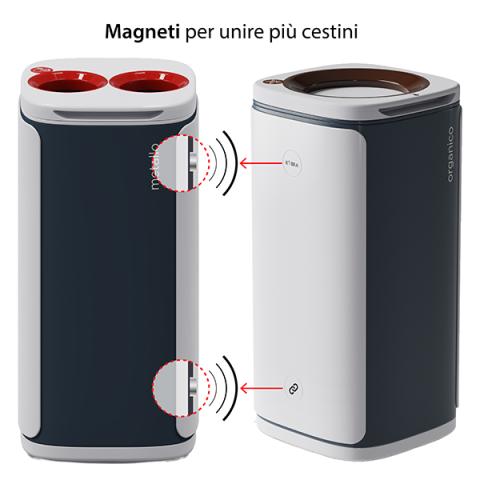 Descrizione / dati tecnici: Il design elegante e moderno permette la sua collocazione in ogni tipo di ambiente. Ideale per creare isole ecologiche in ufficio e negli spazi pubblici. Due aree circolari, presenti ai lati della scocca esterna, contengono dei magneti per far agganciare facilmente i vari moduli. Contenitori stabili costruiti in ABS e PP riciclabilial 100% riciclabili. Facile e veloce il sistema per lo svuotamento del sacco con apertura a basculante del coperchio. CapacitA' cestino 60 lt. Dimensioni: (LxPxH 34x34,5x70,5.