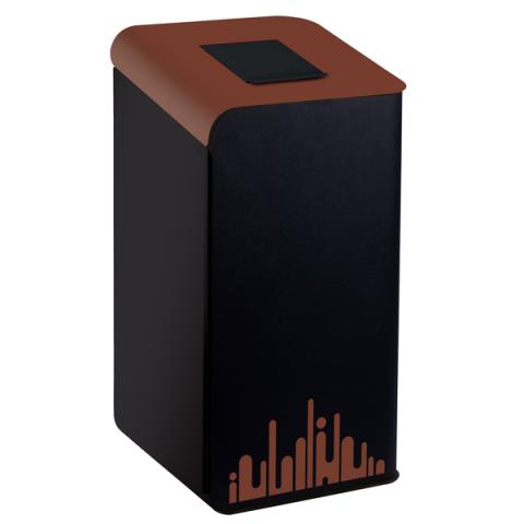 Descrizione / dati tecnici: Corpo e coperchio in metallo verniciato; coperchi colorati per incentivare la raccolta differenziata; etichette “skyline” colorate già applicate; sistema reggisacco integrato; apertura mediante sportello superiore; ideale per creare isole ecologiche; in opzione, 4 piedini regolabili in altezza; kit quattro ruote Ø 40 mm (2 ruote con freno); in opzione, etichette pre-fustellate in vinile per la differenziata. Dimensioni: L40,5 x 42,5 x 79,5cm.