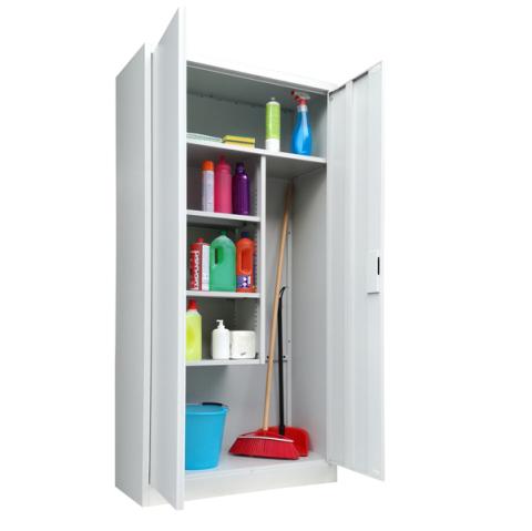 Armadio porta scope in metallo a 2 ante battenti 90x41xH181,5cm Grigio Kub8