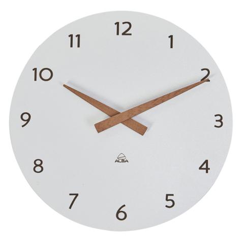Descrizione / dati tecnici: Orologi eleganti e di tendenza ideale per aree di ricevimento e uffici. Struttura in MDF colori soft con lancette in noce. Movimento al quarzo di alta precisione. Silenzioso. Funziona con una batteria AA (non inclusa). Dimensione Ø 30cm - spessore 5mm. Garanzia 3 anni.