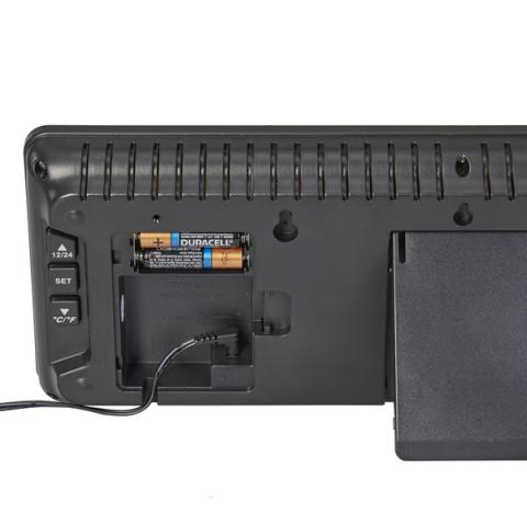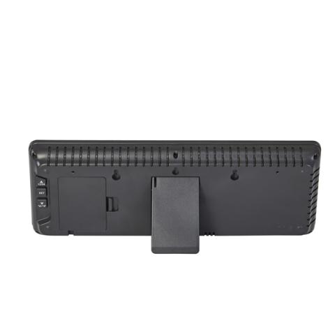 Descrizione / dati tecnici: Orologio LCD a tripla funzione: ora, calendario e temperatura. Funzione calendario: visualizzazione dell'ora; giorno e mese. Funzione temperatura in Celsius / Fahrenheit. Ottima visibilità dell'ora grazie ai caratteri alti 11cm. Può essere fissato a muro o posizionato su un tavolo grazie ai 2 ganci in dotazione. Struttura in ABS e vetro. Caratteri blu su fondo nero. Adattatore + batteria tampone LR6 (in dotazione). Dimensione L37,5 x H13,5cm - spessore 3,8cm. Garanzia 3 anni.