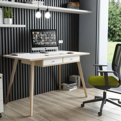 Descrizione / dati tecnici: Postazioni di lavoro dalle dimensioni ideali per lo smart-working. Lo stile di influenza scandinava, caratterizzato dal design minimale delle gambe e dall’abbinamento del bianco con la finitura naturale del rovere, offre la possibilità di allestire la postazione in qualunque ambiente domestico.Materiale bilaminato nobilitato melaminico conforme alle norme UNI e EN classe E1. Grazie ai piccoli ma capienti cassetti sotto il piano di lavoro è possibile archiviare documenti ed oggetti per renderli sempre disponibili a portata di mano (i cassetti non hanno guide, ciò permette di toglierli dalla struttura ed utilizzarli anche in appoggio sul desktop).
