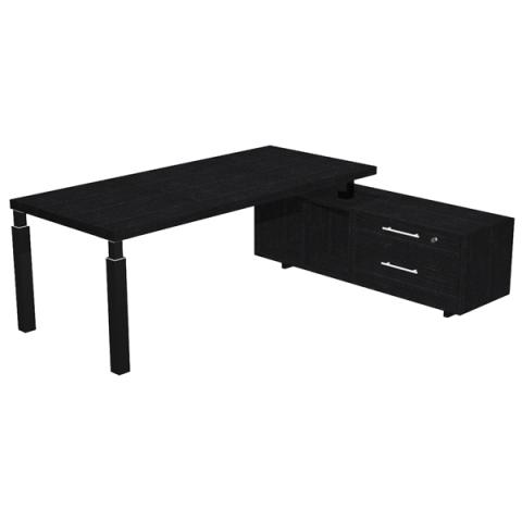 Scrivania direzionale Prestige Quadro - con mobile di servizio - 210 x 90 cm - nero venato/nero