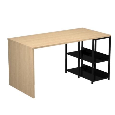 Desktop (L140 x P69 cm) e fianco in nobilitato melaminico sp. 22 mm conforme alle norme UNI e EN classe E1. Struttura metallica L69 P35 H70,2 cm con tre montanti sezione 20x20 mm e due ripiani. L’altezza utile del ripiano inferiore è di 28,1 cm, mentre quella del ripiano superiore è di 37 cm sotto il desktop e 35 cm in corrispondenza dei tre montanti.