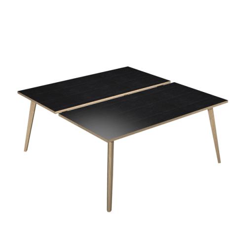 Scrivania Woody a 2 postazioni contrap. - 140 x 166 cm - rovere / nero venato