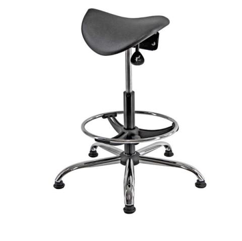 Sedia tecnica a sella E19W - con poggiapiedi telescopico - piedini in gomma - nero/acciaio - Unisit