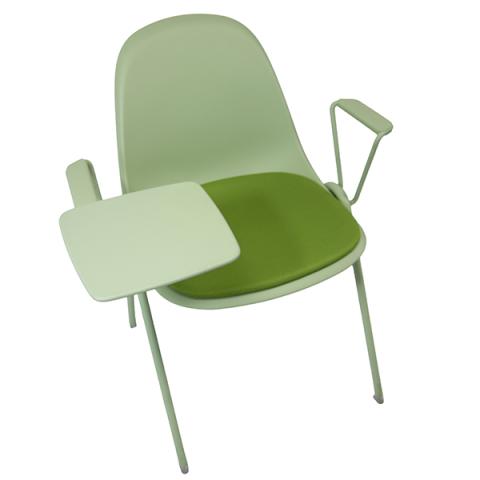 Descrizione / dati tecnici: Sedia in polipropilene con braccioli, tavoletta reclinabile e pannello rivestito sul sedile. Adatta per uso intenso, portata massima 120kg. EN 16139. Altezza: 83cm ; Profondità: 58cm. Sedile altezza seduta da terra: 46cm. Sedile larghezza: 47cm. Sedile Profondità: 42cm. Schienale altezza: 44cm. Schienale larghezza: 44cm.