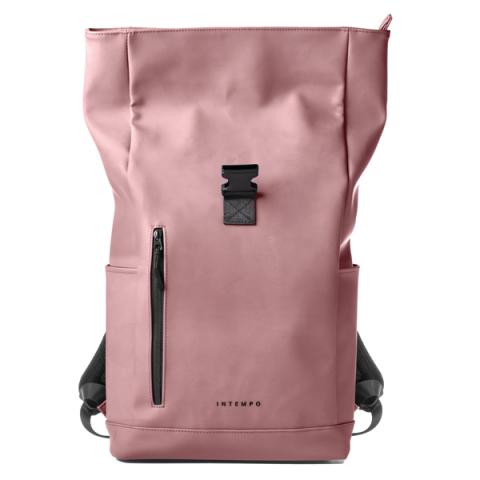 Descrizione / dati tecnici: Zaino roll-top in gomma antipioggia, tasca frontale portachiavi e accessori. Grande vano centrale con all’interno guscio estraibile per notebook 15”. Doppia tasca laterale per borraccia e ombrello, schienale e tracolle imbotite, maniglia per il trasporto.