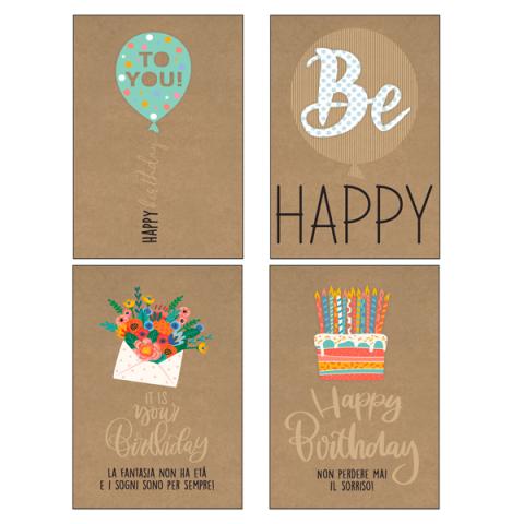 Descrizione / dati tecnici: Biglietti stampati su cartoncino da 200gr con rispettiva busta in carta da 90gr. Confezionati in scatole trasparenti in PVC.