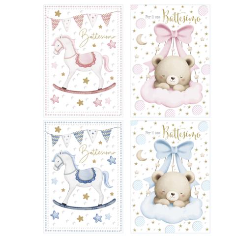 Biglietto Battesimo - con glitter - fantasie assortite - Rex Sadoch