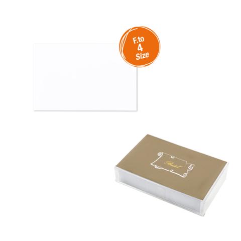 Descrizione / dati tecnici: Scatola in acetato trasparente con 100 cartoncini bianchi da 240gr liscio. Formato 4-69x106mm.
