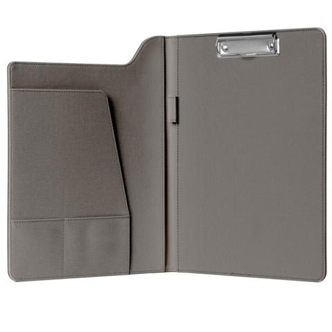 Descrizione / dati tecnici: Cartella portablocco dotata di molla in metallo per blocchi A4. Copertina frontale antiscivolo. Dotata di aletta portadocumenti, scomparto per biglietti e asola portapenne.