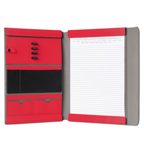Descrizione / dati tecnici: Cartella portablocco dotata di alette con chiusura magnetica. Pannello interno con funzione porta cancelleria removibile e richiudibile.