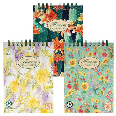 Descrizione / dati tecnici: Blocco spiralato, lato corto, in carta riciclata, 50 fogli, carta da 80gr. Copertine in fantasie assortite.