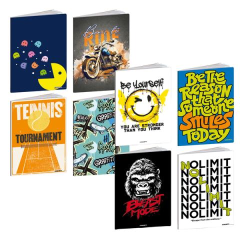 Descrizione / dati tecnici: Maxiquaderni in edizione limitata. Copertina in cartoncino con verniciatura UV da 200gr. Carta da 80 gr, 20+1 fogli con risquardo. Rilegatura con punto metallico.