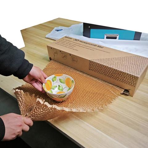 Descrizione / dati tecnici: Dispenser semplicissimo da usare: basta estrarre la carta alveolare dalla scatola e strapparla manualmente. Ogni confezione contiene fino a 30 metri di materiale in carta alveolare 3D espansa. Ideale per applicazioni di avvolgimento e riempimento che richiedono la massima protezione del prodotto. Perfetto sostituto dei materiali plastici da imballaggio come pluriball o schiume in PE, offre una protezione superiore rispetto ai tradizionali fogli fustellati in carta. Grammatura 50gr.