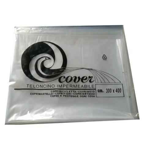 Descrizione / dati tecnici: Teli in politene trasparente e impermeabile spessore 60 micron, ideali per coperture durante lavori di tinteggiatura o di manutenzione. Utili anche per coprire e proteggere fiori, ortaggi, biciclette, mobili da giardino ecc. Formato 300x400cm.
