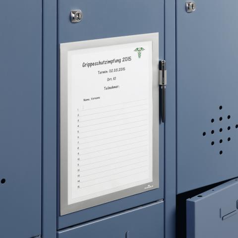 Descrizione / dati tecnici: Cornice espositiva magnetica per la scrittura diretta sull'inserto grazie al pannello frontale magnetico dotato di finestra.