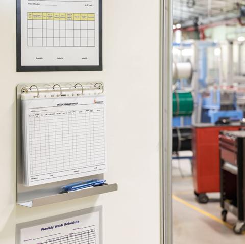 Descrizione / dati tecnici: Supporto con retro magnetico per esporre grandi quantità di documenti facilmente sfogliabili e removili dotato di ampio piano di appoggio e supporto per penne. Dotato di 4 anelli standard, può essere utilizzato con buste perforate, fogli perforati o le specifiche buste rinforzate Djois con magnete. Realizzato in alluminio composito. Utilizzabile su superfici metalliche, come portablocco, o anche su lavagne magnetiche. Dimensioni: A4 31x32x5,3cm.