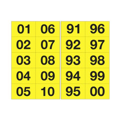 Descrizione / dati tecnici: Etichette adesive. Formato foglio: 98 x 200mm. Formato etichetta: 44 x 34mm. Altezza carattere: 24mm. Colore: scritta nera su foglio giallo.