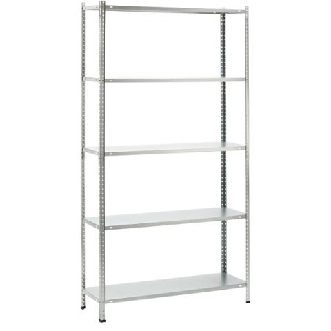 Descrizione / dati tecnici: Scaffale in metallo galvanizzato a bulloni con 5 ripiani, spessore 0,5 mm, portata massima 50 kg per ripiano uniformemente distribuiti. Spessore struttura 0,55 mm. Prodotto da assemblare. Dimensioni:H187 x P30 x L100cm. Articolo destinato ad esclusivo uso domestico. Non adatto ad uso pubblico.