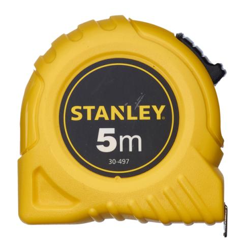 Descrizione / dati tecnici: Flessometro da 5metri. Nastro in metallo. Carcassa in ABS giallo. Sistema di blocco del nastro e rientro in automatico.