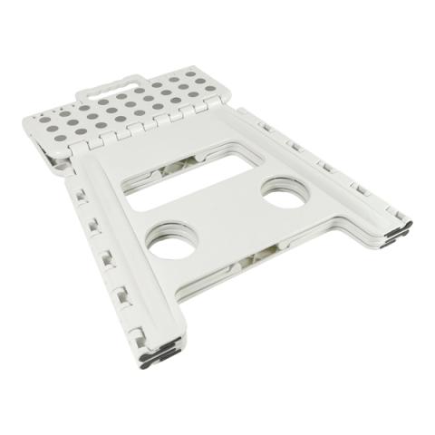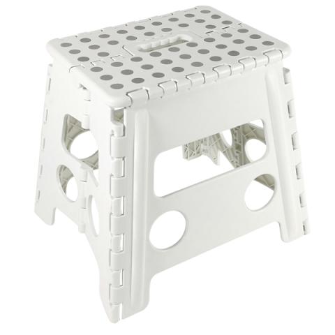 Descrizione / dati tecnici: Sgabello Clic Clac alto bianco. Pieghevole in polipropilene. Dimensioni: 30x22x32Hcm. Richiudibile con un semplice gesto, dotato di maniglia per un facile trasporto. Prodotto ad uso domestico.