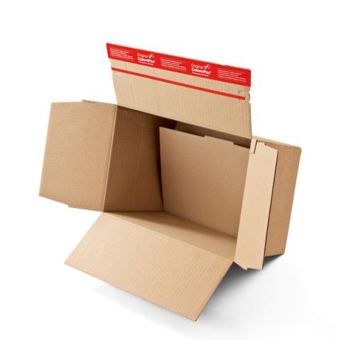 Descrizione / dati tecnici: Scatola automontante con coperchio ad alette sovrapposte. Chiusura autoadesiva senza l'utilizzo di nastro adesivo o graffette. Altezza adattabile al contenuto grazie a delle scanalature da 32a 132mm. Fondo doppio. Misure interne 344x290x32-132mm. Misure esterne 350x295x40-150mm.