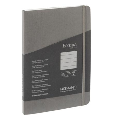 Taccuino Ecoqua Plus - con elastico - rilegatura cucita - A5 - 5 mm - 80 fogli - righe - artracite - Fabriano