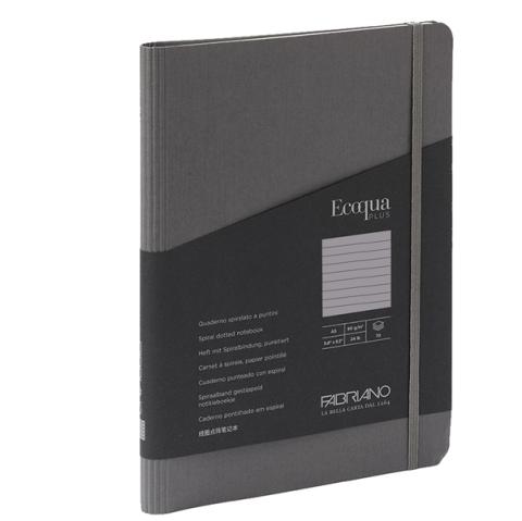 Taccuino Ecoqua Plus - con elastico - spiralato - A5 - 70 fogli - righe - antracite - Fabriano
