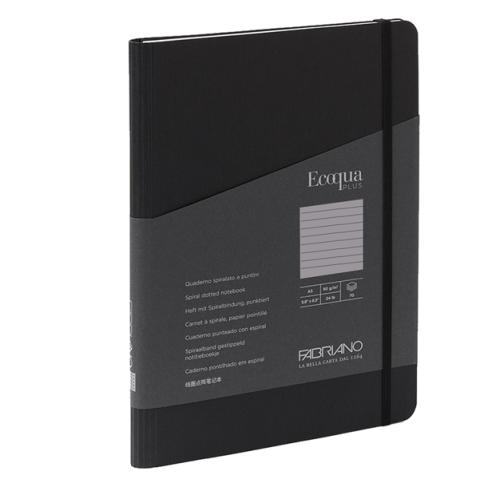 Taccuino Ecoqua Plus - con elastico - spiralato - A5 - 70 fogli - righe - nero - Fabriano