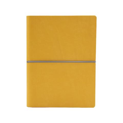 Descrizione / dati tecnici: Taccuino con copertina in sintetico effetto liscio. Morbida, resistente e flessibile. Chiusura con elastico orizzontale. Carta riciclata colore avorio. Fatto a mano in Italia.