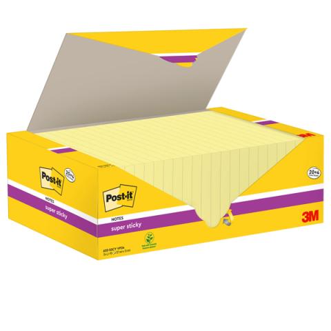 Blocco foglietti Post-it Super Sticky - 655-SSCY-VP24 - 76 x 127 mm - giallo Canary - 90 fogli - Post-it - conf. 24 blocchi