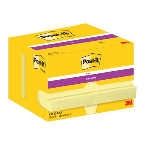 Blocco foglietti Super Sticky - 656-12SS-CY-EU - 47,6 x 76 mm - giallo Canary - 90 fogli - Post-it