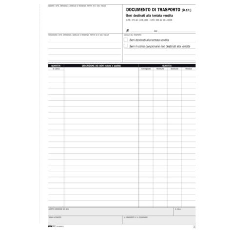 Descrizione / dati tecnici: BLOCCO DDT CARICO TENTATA VENDITA. Formato 29,7x 21cm. 50 fogli. 2 copie ric.