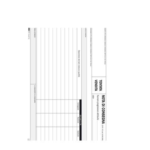 Descrizione / dati tecnici: BLOCCO NOTE CONSEGNA TENT. VENDITA. Formato 15 x 23cm. 50 fogli. 2 copie ric.